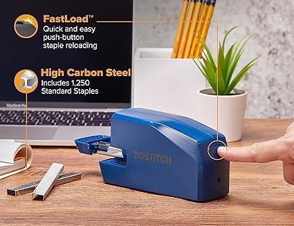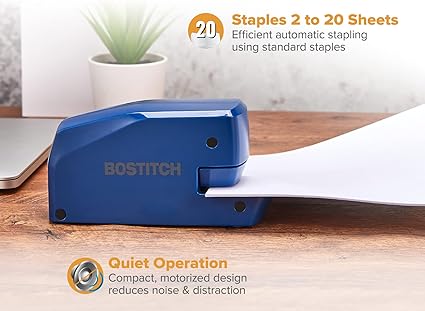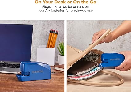 Bostitch Office Portable Electric Stapler, 20 Sheets, AC or Battery Powered, Includes 1250 Staples, Blue